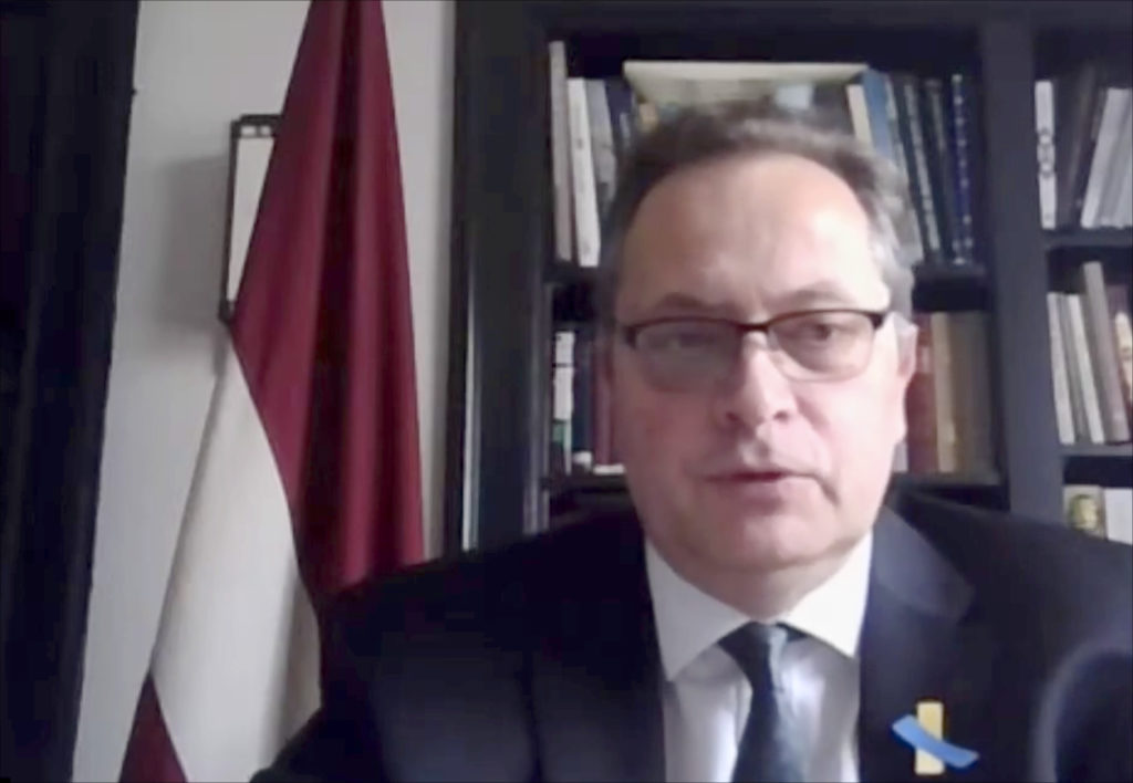Latvian Ambassador Māris Selga speaks during a March 1 webinar organized by CEPA.