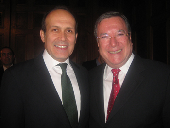 Ambassador of Turkey Namik Tan, left, and Ambassador of Monaco Gilles Noghès co-hosted a discussion on a clean water partnership between Coca-Cola and Dean Kamen, president of DEKA Research and Development Corp.