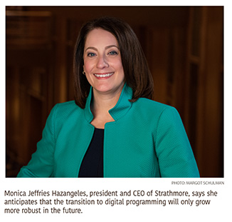 “That is great increase in digital interaction with Strathmore around content,” said Monica Jeffries Hazangeles, president and CEO of Strathmore, a multidisciplinary arts center that features performances in a main music center, smaller events in the mansion and a new 250-seat venue called AMP at the nearby Pike & Rose development complex.