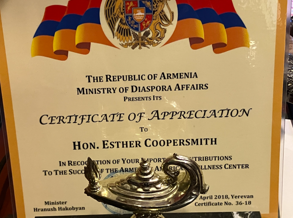 My aunt is a magnificent woman and has done so many good things for other people. What a pleasure it was to read the article on Esther Coopersmith. It was nicely done and very entertaining. Even though it was a very informative article, it only scratched the surface of things my aunt has accomplished in her lifetime. We Love her to the moon and back and never more proud.