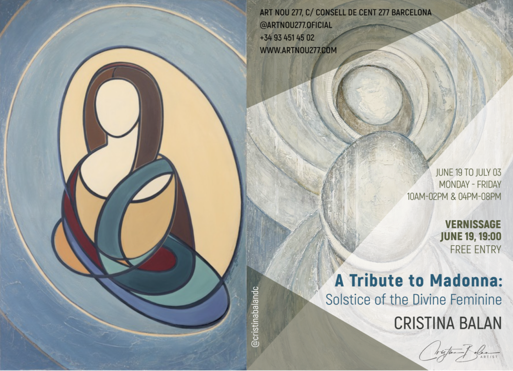 “A Tribute to Madonna: Solstice of the Divine Feminine” will run June 19 to July 3 at the Art Nou 277 gallery in Barcelona, Spain. The exhibit consists of 12 paintings that—as the title implies—coincides with the summer solstice and honors the Madonna.