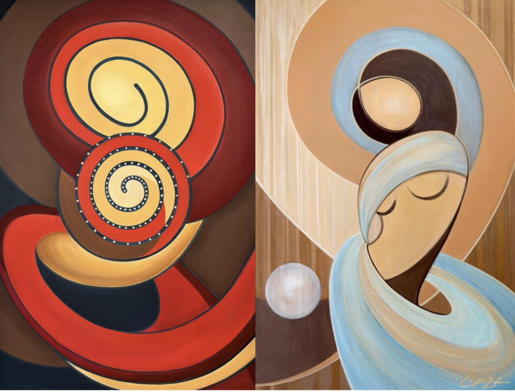 The dozen paintings in Balan’s exhibit—with names like Immaculada, Mother of Creation, Mona, Golden Heart and Dancing Venus—employ abstract spirals and vortexes inspired by the mathematical Fibonacci sequence. Italian art critic Francesco Caprioli calls her style “a pure sense of divine that radiates the spirit and spreads into nature.”