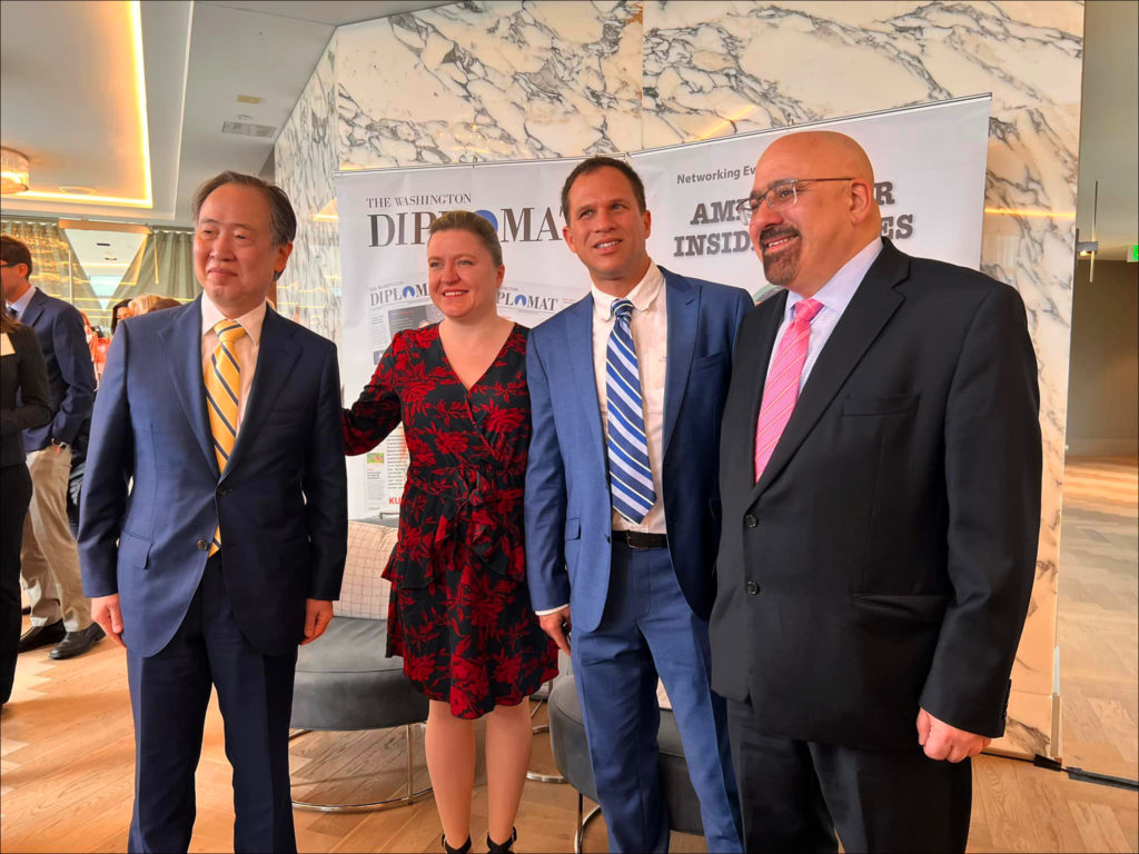 Some 150 people attended the program, which took place at the rooftop conference room of the 1331 Maryland luxury apartment building overlooking Washington’s Tidal Basin and thousands of Japanese cherry trees at the peak of flowering that were given to the city by Tokyo in 1912.