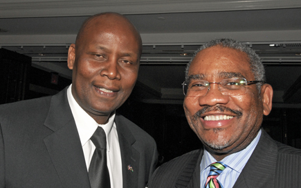 Kenya’s ambassador to the United States, Elkanah Odembo, left, and Rep. Gregory W. Meeks (D-N.Y.) raise a toast to President Obama’s inauguration.