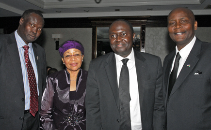 From left, Ambassador of South Sudan Akec Khoc, Ambassador of Tanzania Mwanaidi Sinare Maajar, Momodou Bamba Saho, executive director of the Africa Group 1 constituency at the IMF, and Ambassador of Kenya Elkanah Odembo attend an inauguration celebration hosted by the Kenyan Embassy at the City Club of Washington.