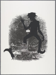 The artists featured within the show explore new ways to create meaning through art, combining and colliding objects and color, as seen notably in two striking works by Wendy Red Star. Other recurring themes see artists tackling the environment from distinctly architectural viewpoints, and revisiting the representation of the human form through fragments, as Kara Walker does in unforgettable works that superimpose the silhouettes of dismembered body parts over etchings from Harper’s Pictorial History of the Civil War.