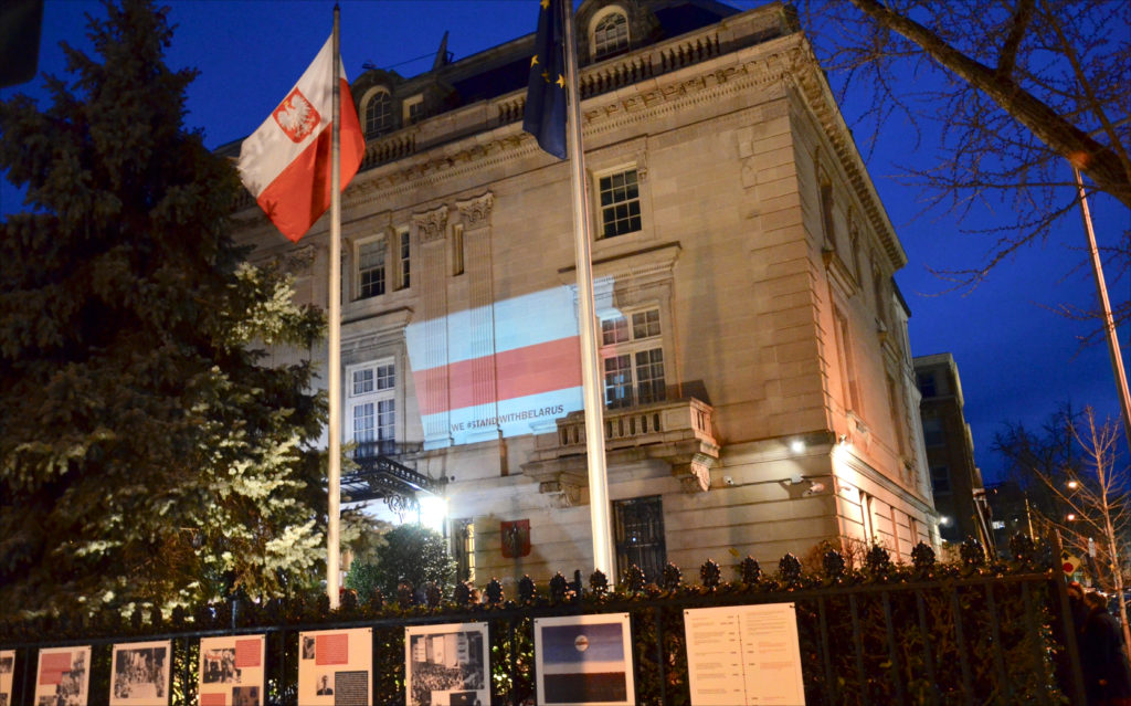 In Washington, the embassies of Poland and Lithuania jointly hosted a Feb. 6 evening of solidarity with those protesters, though attendance was capped at 40 people due to coronavirus health restrictions.