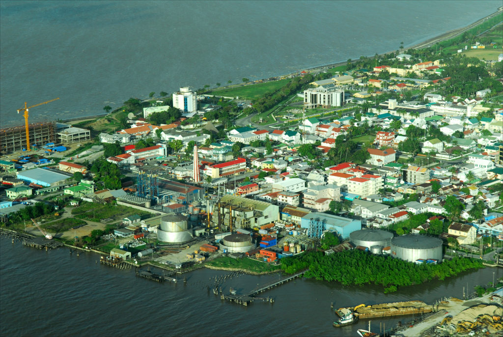 Aerial view of Georgetown, Guyana’s coastal capital city. (Photo by Larry Luxner)