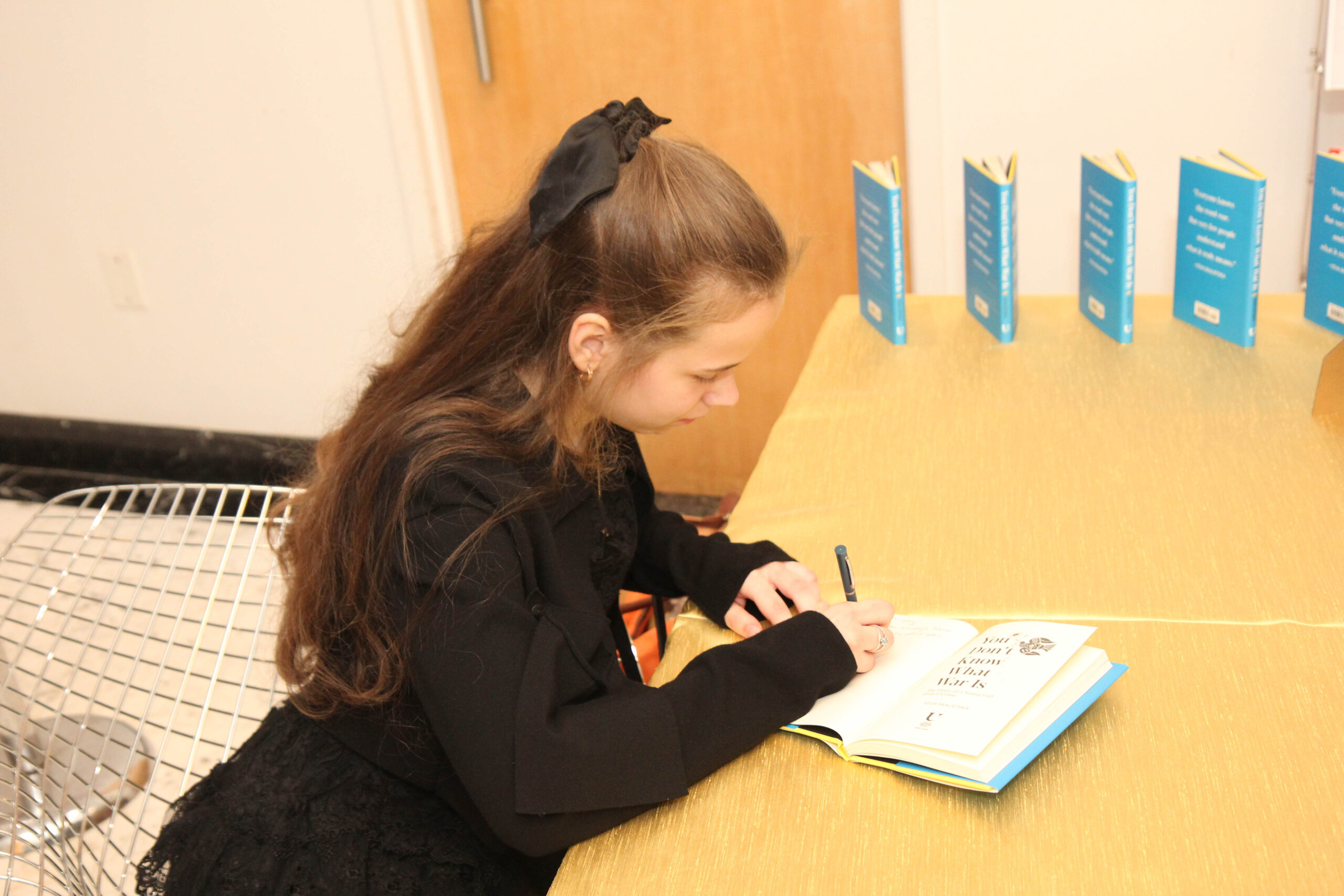 Guests listened intently as Yeva Skalietska recounted how, at age 12, she and her grandmother fled Kharkiv in northeastern Ukraine as the Russian military attacked at the start of the invasion. Skalietska, who is now just 14 and lives in Dublin, has published a book in English called “You Don’t Know What War Is,” which Goodreads describes as “an important, harrowing and ultimately hopeful memoir about the ongoing Russian-Ukrainian war as told through the diary entries” of Skalietska.
